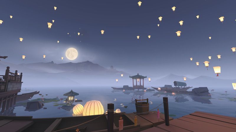 在水面附近的話可以放下古典水燈並發送祈福語。