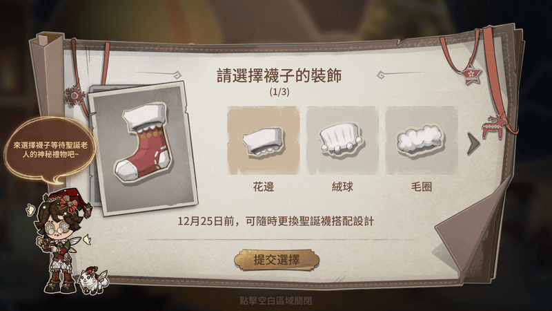 | 完成所有任務可領取獎勵 | ![]() 【頭像框】聖誕贈禮 |