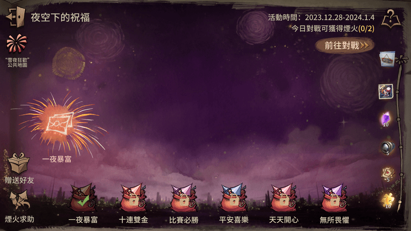 每日對戰可隨機獲得祝福煙花,蒐集到新的煙花即可獲得獎勵。