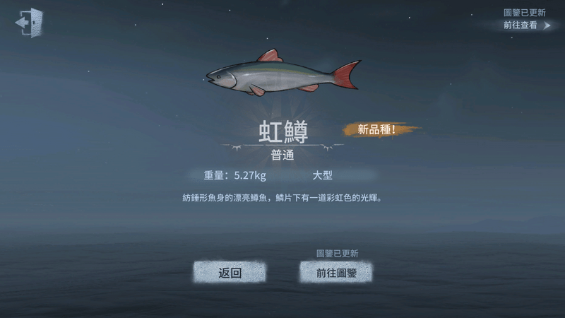 獲得的魚將進入背包-魚簍中,對其【使用】則可以將魚拎出展示。其中,稀世魚在展示時有額外的閃光特效。