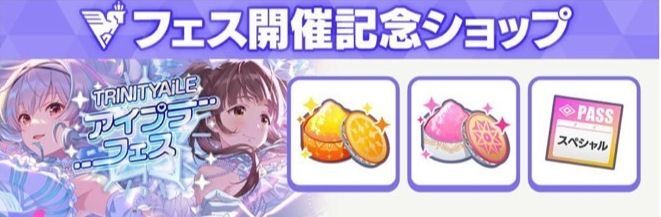 「TRINITYAiLEフェス開催記念特別ショップ」は、★5アイドル1人確定の「★5アイドル1人確定アイプラフェスガチャチケ」、TRINITYAiLEフェス開催記念の特別な名刺デコなどが購入可能な特別ショップです。