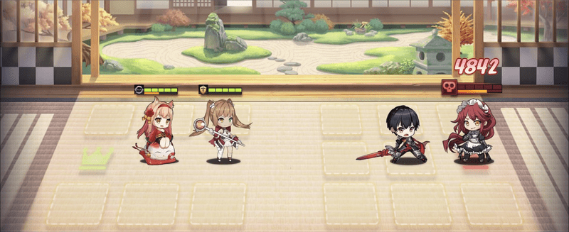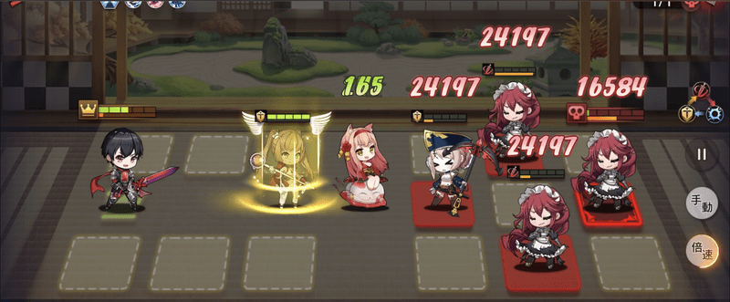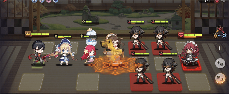 | 2 | ![]() 全体攻撃ができるキャラで一斉に攻撃します。今回は鳳凰月華が回ってきましたが相手は雑魚なのでSRライジーアなどでも一斉除去できます |