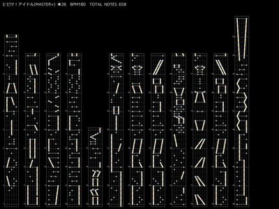 - 楽曲レベルは26とMASTER+の中では手ごろであり、またスライドの基本動作が一通り含まれていてかつ癖は小さい。