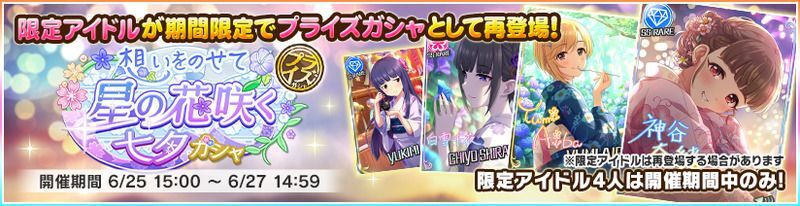 - 2025.06.16 ~ 2025.06.19 プレミアムオーディションガシャ/リミテッドスキルピックガシャ