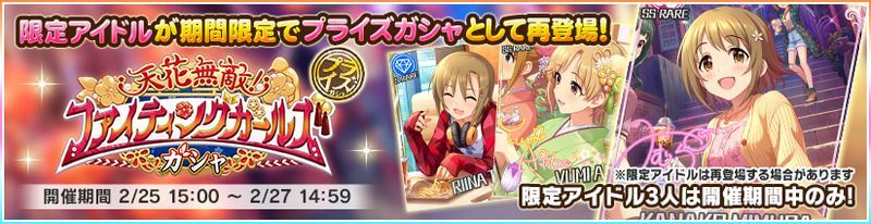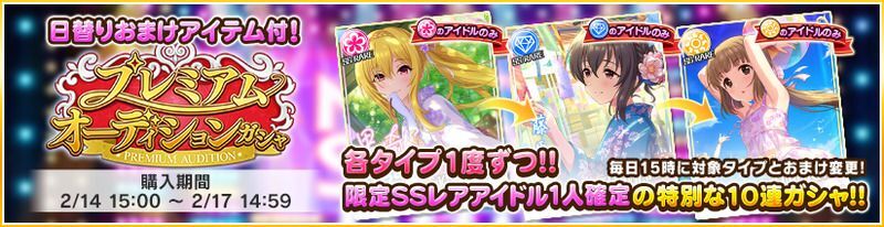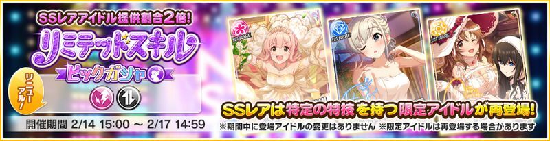 - 2025.02.14 ~ 2025.02.17 プレミアムオーディションガシャ/リミテッドスキルピックガシャ