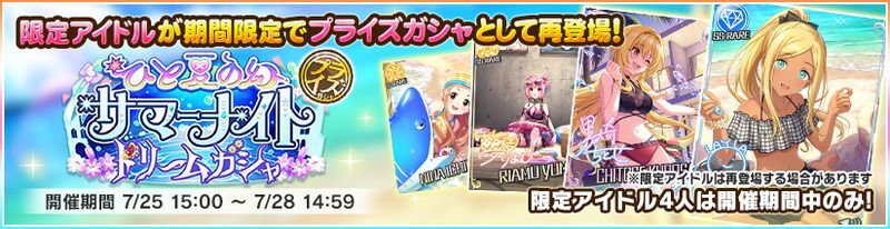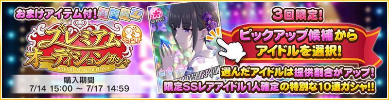 - 2025.07.14 ~ 2025.07.17 プレミアムオーディションガシャ/リミテッドスキルピックガシャ