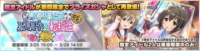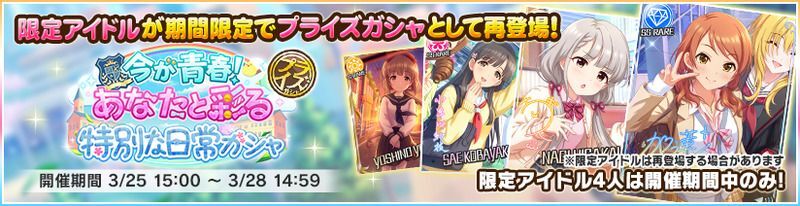 - 2025.03.14 ~ 2025.03.17 プレミアムオーディションガシャ/リミテッドスキルピックガシャ