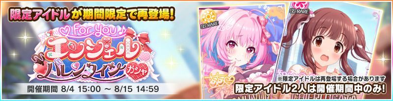 - 2025.08.04 ~ 2025.08.15 【期間限定再登場】♡ for you♪ エンジェルバレンタインガシャ