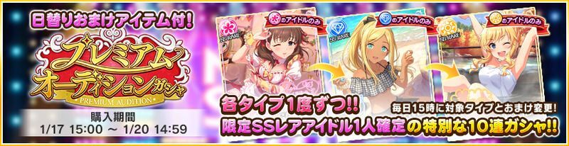 - 2025.01.17 ~ 2025.01.20 プレミアムオーディションガシャ/リミテッドスキルピックガシャ