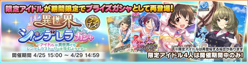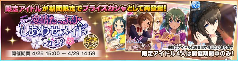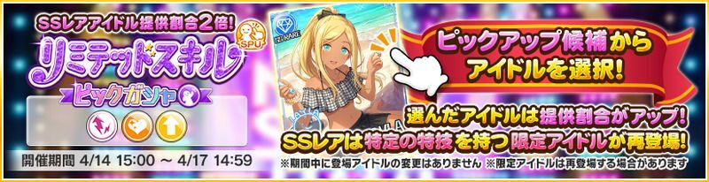 - 2025.04.14 ~ 2025.04.17 プレミアムオーディションガシャ/リミテッドスキルピックガシャ