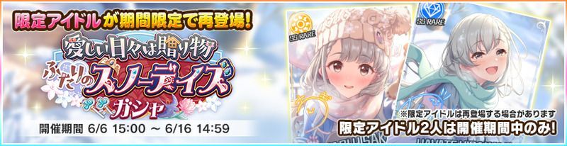 - 2025.06.06 ~ 2025.06.16 【期間限定再登場】愛しい日々は贈り物 ふたりのスノーデイズガシャ