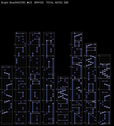 - ノーツ数は389と少なく、心もようの実装まではMASTERにおける唯一の400ノーツ未満であった。