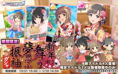 12月31日 15:00より、プラチナオーディションガシャに「新年に舞う夢思ふ振袖ガシャ」を開催しております。