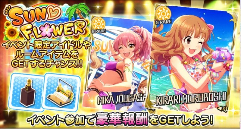「イベントptランキング報酬」、「達成pt報酬」、「ハイスコアランキング報酬」で、イベント限定のSレアアイドルやルームアイテムを手にいれましょう。