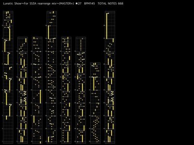 - 難易度はオリジナル版と同じLv.13だが、あちらは強めに対し、本曲は13の中堅程度となっている。その代わりノーツ数が185と増えているが・・・
