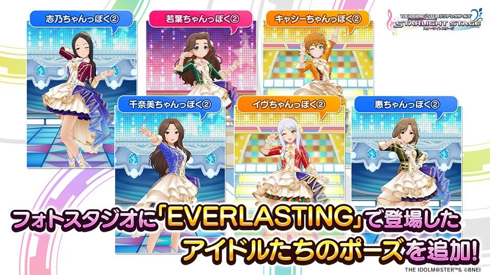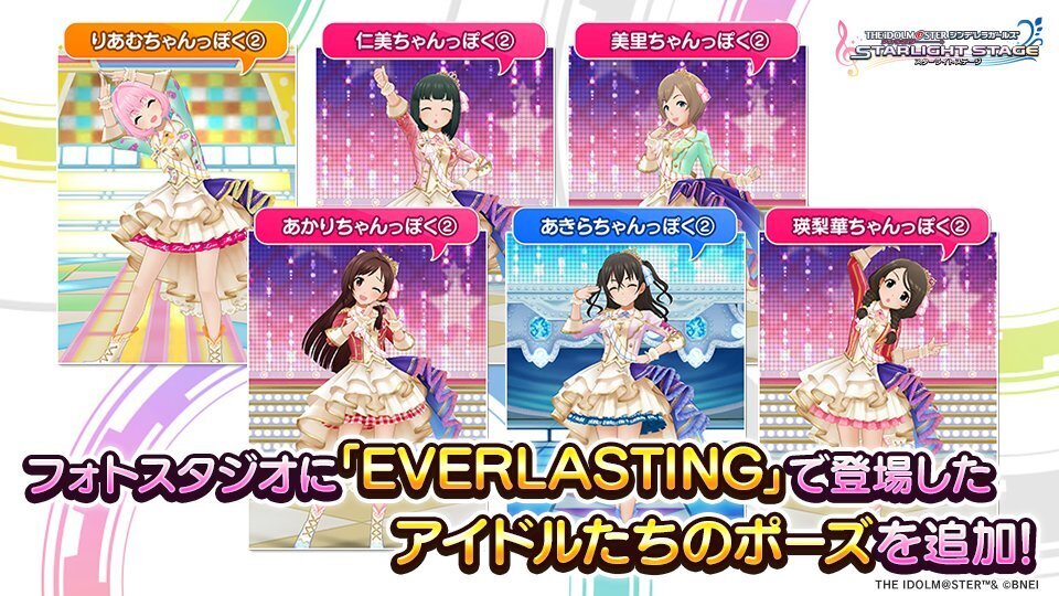 - 「EVERLASTING」で登場するアイドルたちのポーズをフォトスタジオ用の「ポーズ」として追加