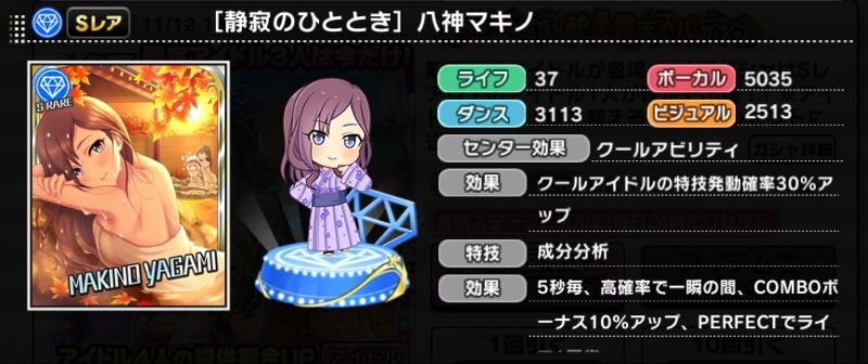 2018年11月03日 15:00より、プラチナオーディションガシャにて「のぼせる温度 絶景露天スパガシャ」を開催しております。今回登場した新アイドルは、下記の期間中、出現率がアップ!