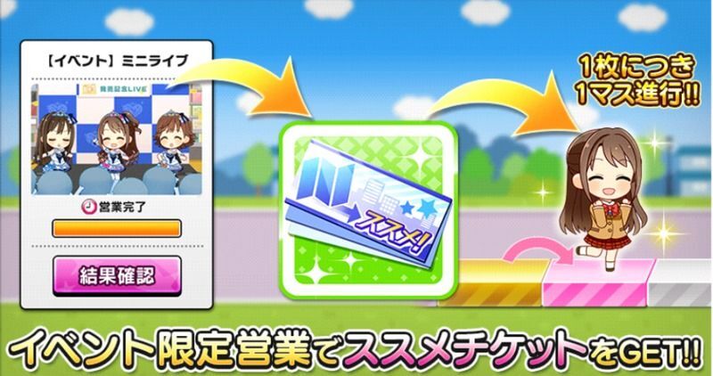 イベント限定営業で、ススメチケットを獲得できます。イベントTOPの「チケットを使用する」ボタンから使用でき、1枚につき、MAPを1マス進行可能です。