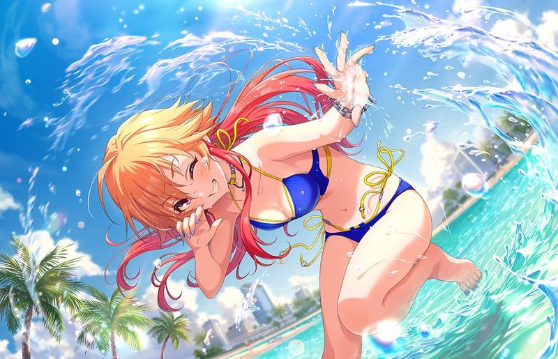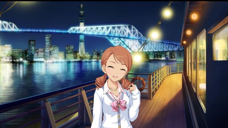 ![]() | SSレア[トゥインクル・パーティー]北条加蓮+ | クルーズ客船『ぱしふぃっくびいなす』 11階プールサイドデッキ | 同上。ちなみに背景の橋はレインボーブリッジが一番近いと思われる |