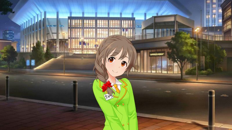 ![]() | Sレア[Great Journey]島村卯月 | 背景の東急5000系車両(愛称=青ガエル)は2020年8月に秋田県大館市に移設しており現在は存在しない | |