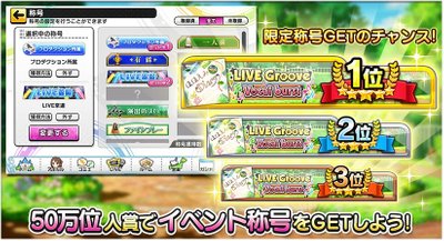 イベントptランキングで50万位に入賞すると、自分の順位が入ったイベント称号を獲得できます。