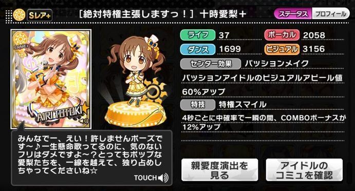 | パッションアイドルのビジュアルアピール値60%アップ | |