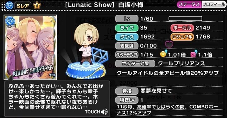 | 特訓前後 | [Lunatic Show]白坂小梅+ |