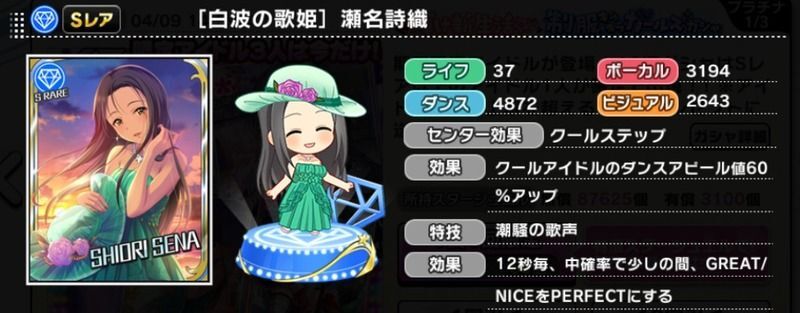 | クールアイドルのダンスアピール値60%アップ | |
