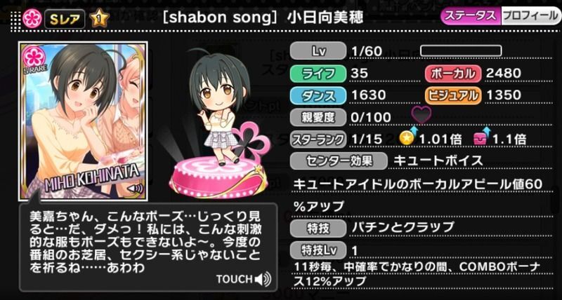 | キュートアイドルのボーカルアピール値60%アップ | |