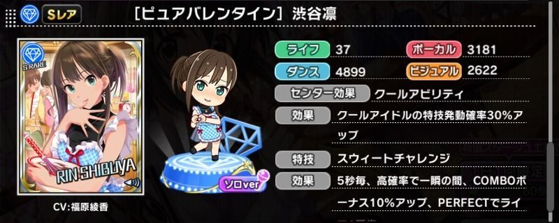 | ドキドキ味わうバレンタインタイムガシャ(2018.01.31~2018.02.09) プラチナオーディションガシャ(2019.01.28)(2019.01.28~2019.01.31) プラチナオーディションガシャ(2020.01.27)(2020.01.27~2020.01.31) プライズガシャ(2021.01.27)(2021.01.27~2021.01.30) メモリアルガシャ3rd(2021.09.26~) | |