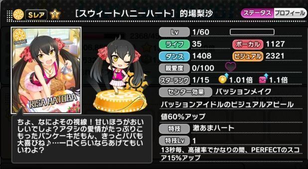 | パッションアイドルのビジュアルアピール値60%アップ | |