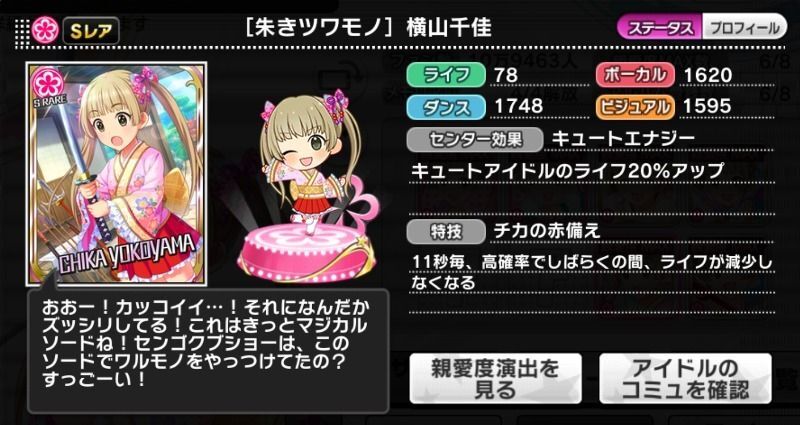 | キュートアイドルのライフ20%アップ | |