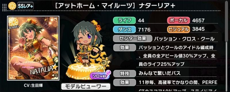 | 11秒毎、高確率でかなりの間、PERFECTのスコア10%アップ、スライドアイコンなら40%アップ | |