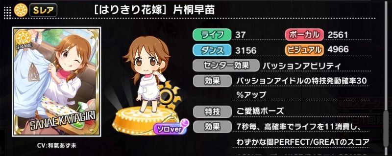 | 7秒毎、高確率でライフを11消費し、わずかな間PERFECT/GREATのスコア18%アップ、NICE/BADでもCOMBO継続 | |