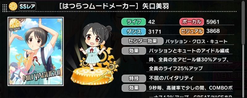 | 9秒毎、高確率で少しの間、COMBOボーナス12%アップ、GREAT/NICEをPERFECTにする | |