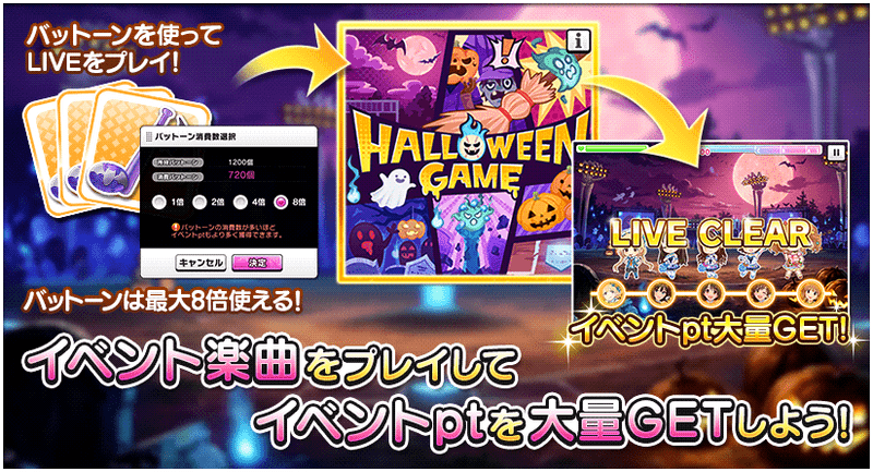 バットーン消費倍率に応じて通常楽曲よりもイベントptを多く獲得できます。