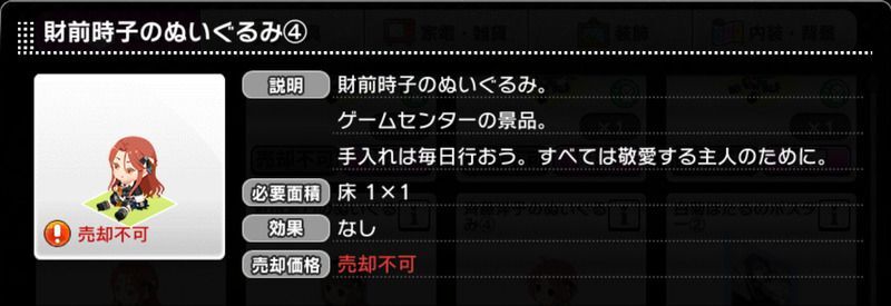 | アイテム名 | 財前時子のぬいぐるみ④ |