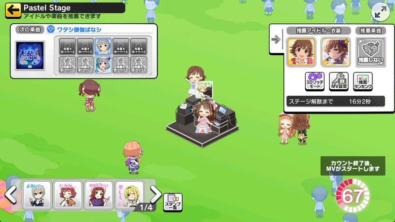 ステージのホストは、次に視聴するMVの楽曲や登場するアイドル、衣装を選択できます。