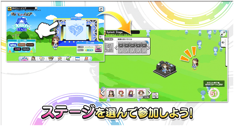 参加したステージがMVを視聴中だった場合、MVは途中から再生されます。