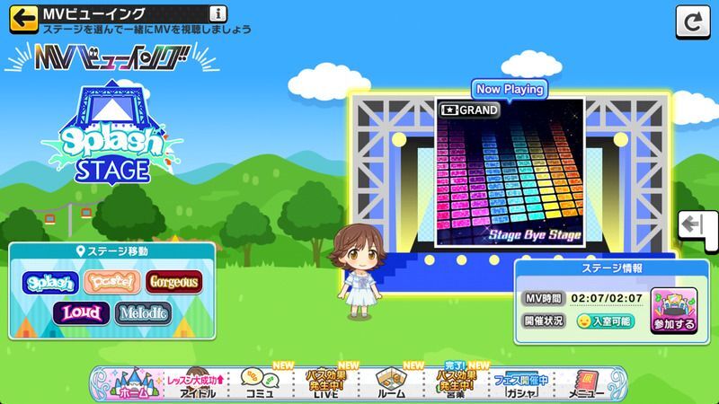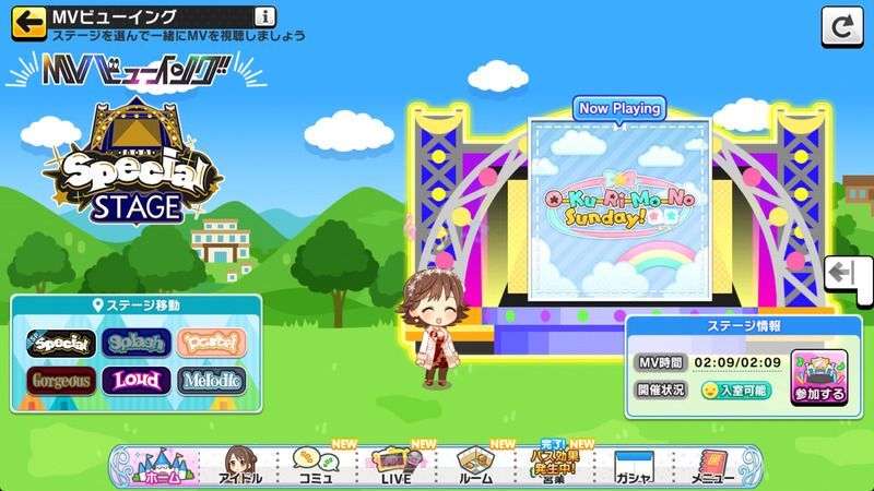 - ステージ内ではMV放映中でも30分経過したらステージ選択画面では「開催可能」状態になります。