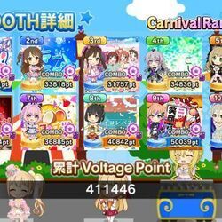 - 全ての「LIVE中」のBOOTHのVoltagePointを合わせた「合計VoltagePoint」が必要値に達するとVoltageがMAXになり、Carnival Rankが上がります。