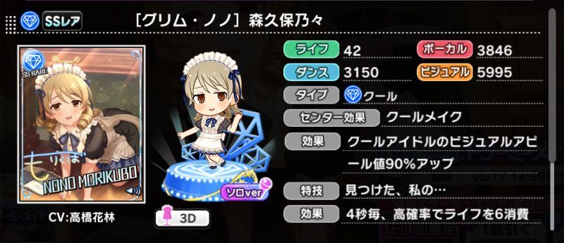 | クールアイドルのビジュアルアピール値90%アップ | |