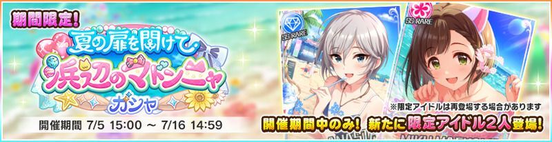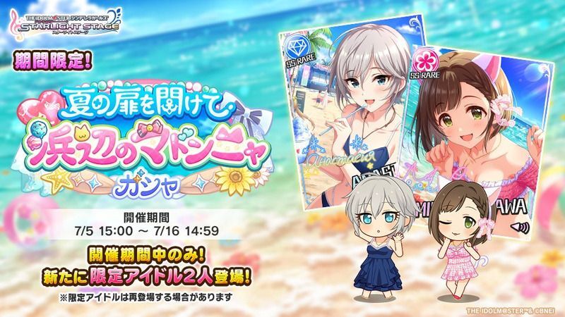 7月5日 15:00より、プラチナオーディションガシャにて「夏の扉を開けて 浜辺のマドンニャガシャ」を開催しております。