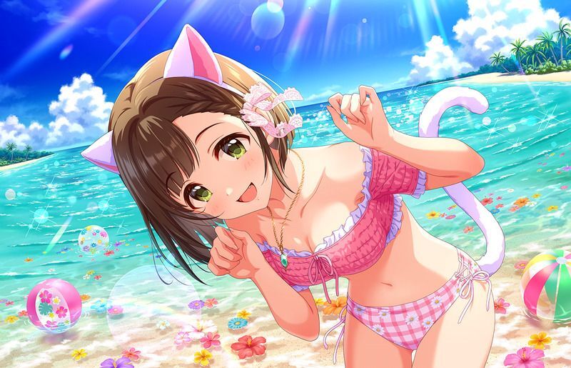 | プロフィール | ほらほら、一緒に遊ぼっ!遊んでくれないと~、えいえいっ、ひっかいちゃうっ♪せっかくのプライベートビーチだモン、みくがひとりじめしちゃうんだ。海もお日様も…Pチャンも♪ | |