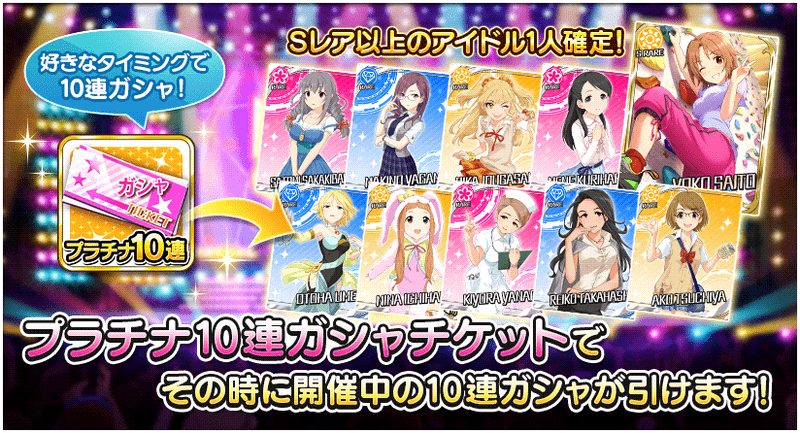 ※「スペシャルスカウトチケット」、「スペシャルSレアスカウトチケット」でスカウト可能な期間限定アイドルは「メモリアルガシャ」からも登場します。