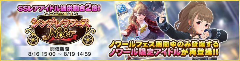 - 2024.08.16 ~ 2024.08.19 プレミアムオーディションガシャ ノワール/シンデレラフェス ノワール