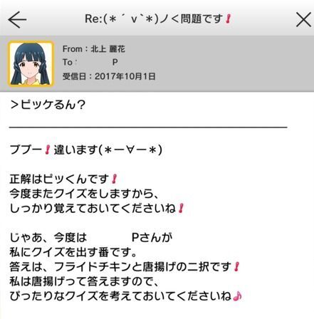 | ぱんぱかぱーん♪今日のログインデューサーさんにボーナスです♪ 明日のログインデューサーさんはこちらも! わーいわーい♪ | ログインボーナス |