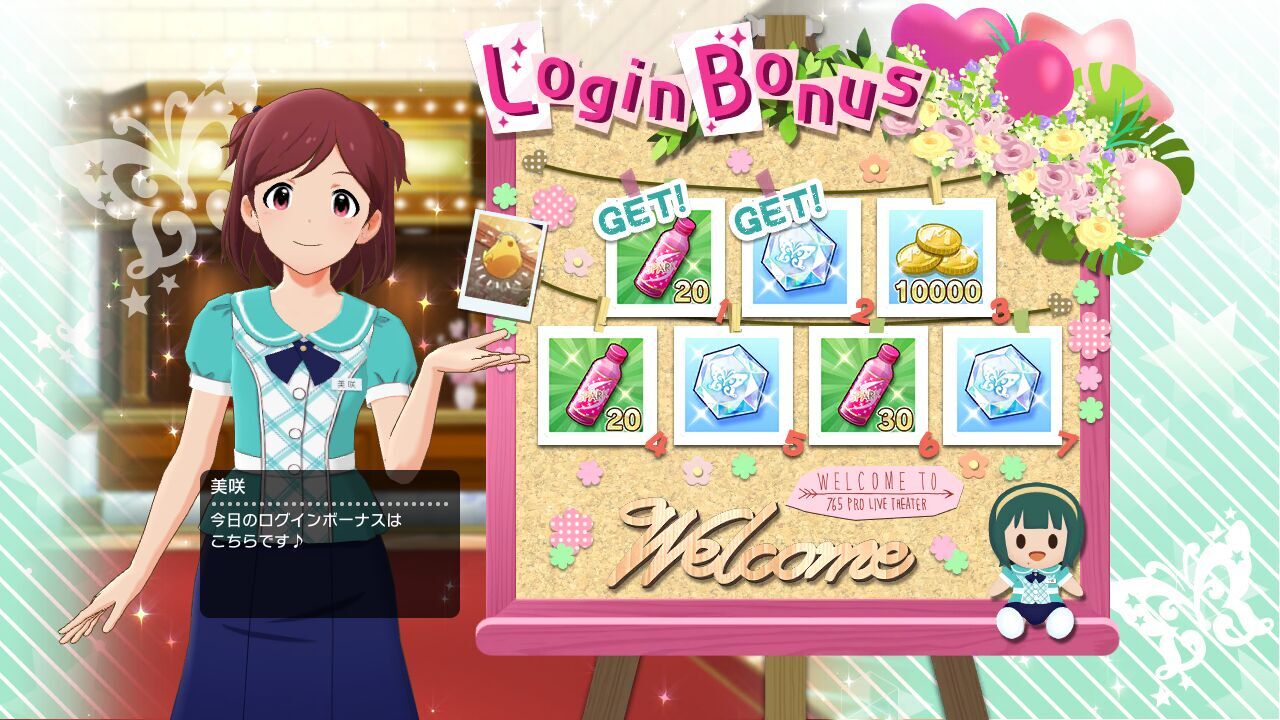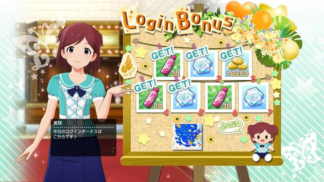 2022/08/18(木)13:00より、通常ログインボーナスに登場する事務員を「音無小鳥 / 青羽美咲」から選択できるようになりました。