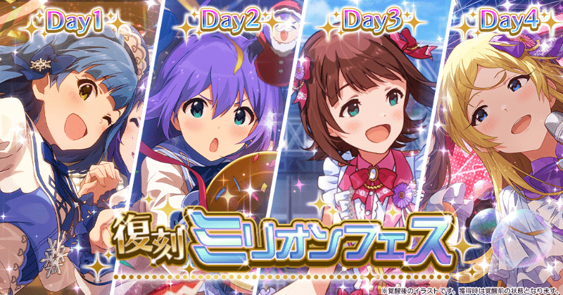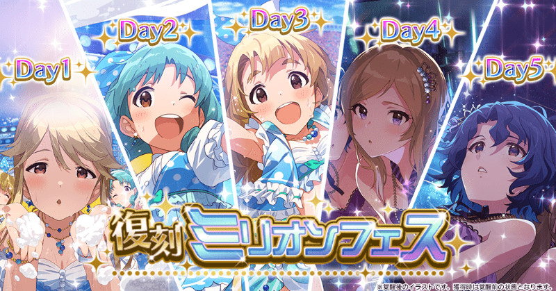 | 【フェス限定】 ミリオンフェス限定 | 3ヶ月に1度復刻開催される「復刻ミリオンフェス」(SSR確率が2倍)にて入手可能 |