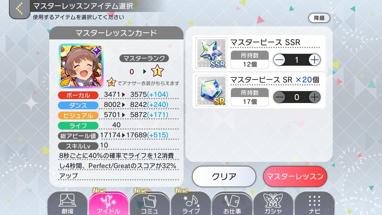 マスターランク☆4のSSRをさらにレッスンできるシステムです。